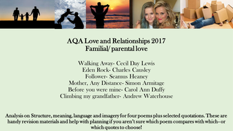 Aqa 2017 Love And Relationships Poetry Family Parental Familial