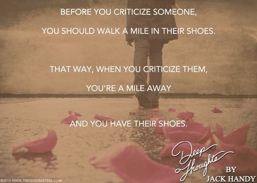 Before You Criticize Someone Walk A Mile In Their Shoes That Way
